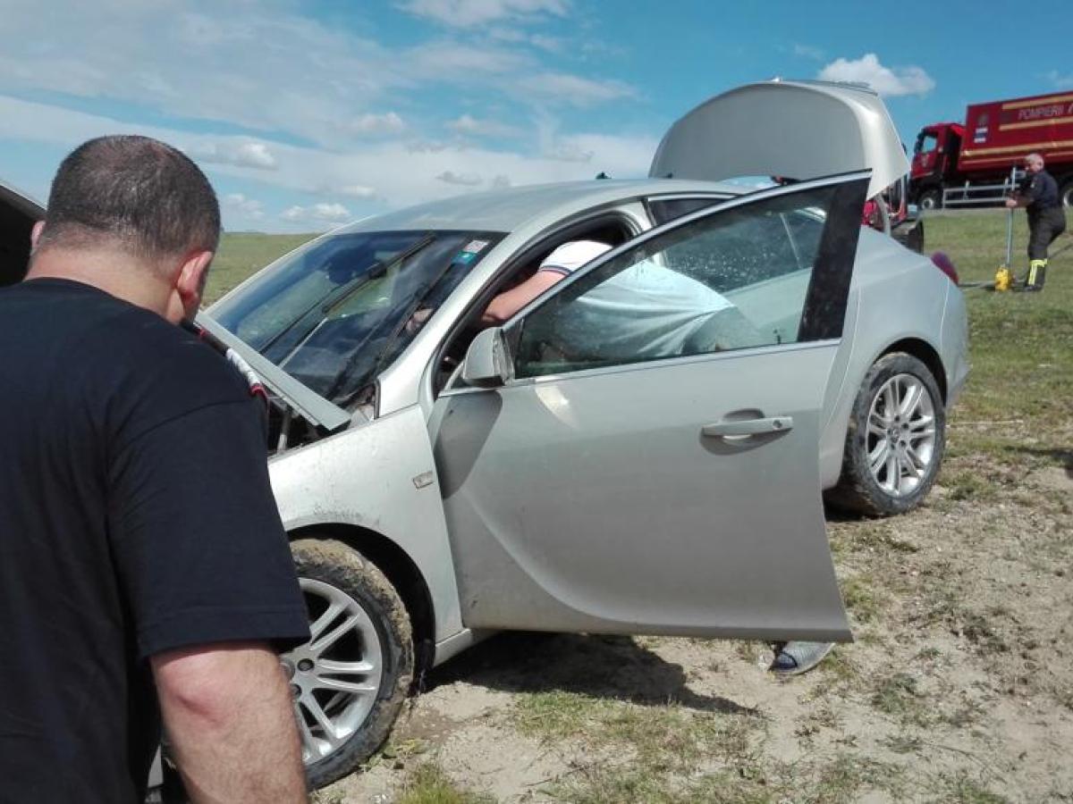 La ora 16.10, autoturismul marca ”Opel” a fost degajat din canalul de irigaţii.