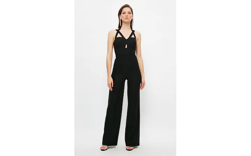 3. Salopetă nude și tocuri cu tocuri ascuțite pentru a-ți subția silueta. Îl poți completa cu o pereche de tocuri pentru a te face să pari mai înaltă.