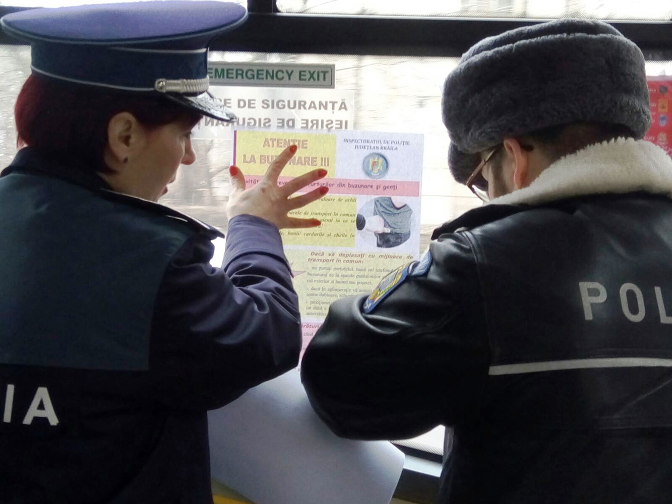 Activităţile au fost desfăşurate în parteneriat cu SC Braicar SA. Poliţiştii le-au transmis mai multe recomandări călătorilor. “Când aşteptaţi autobuzul sau alt mijloc de transport în comun în staţii aglomerate, daţi dovadă de vigilenţă şi atenţie faţă de conduita persoanelor de lângă dumneavoastră; evitaţi să citiţi în mijloacele de transport în comun deoarece atenţia vă este diminuată şi puteţi deveni cu uşurinţă victime ale hoţilor; dacă în aglomeraţie vă simţiţi înconjuraţi de persoane dubioase, încercaţi să vă schimbaţi locul; poziţionaţi poşeta/geanta în faţa dumneavoastră, iar dacă e posibil, între corp şi un element fix din autovehicul; dacă vă aşezaţi pe scaun, ţineţi bagajele în braţe, în niciun caz spre exterior ori spre vecinul de scaun; nu purtaţi portofelul, banii ori telefonul mobil în buzunarul de la spatele pantalonilor; dacă circulaţi la ore târzii, când sunt puţini călători, aşezaţi-vă cât mai aproape de conducătorul auto sau lângă alţi pasageri care vă inspiră încredere!”.