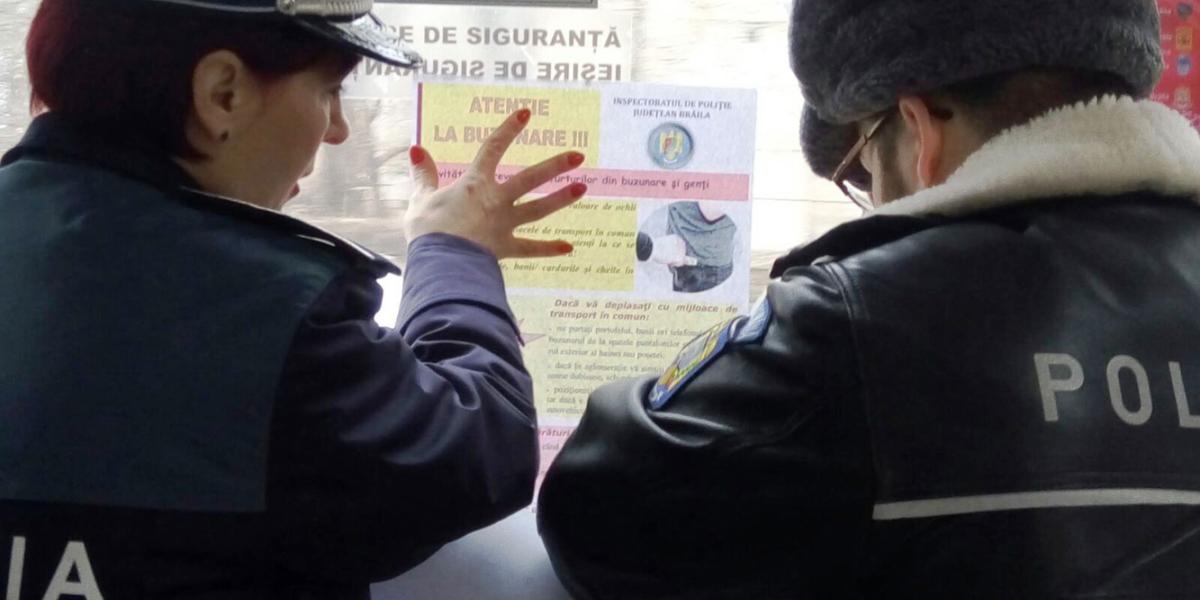 Activităţile preventive pe linia prevenirii furturilor din buzunare şi genţi continuă săptămâna aceasta, în municipiul Brăila, în zone publice aglomerate şi în mijloacele de transport în comun.
