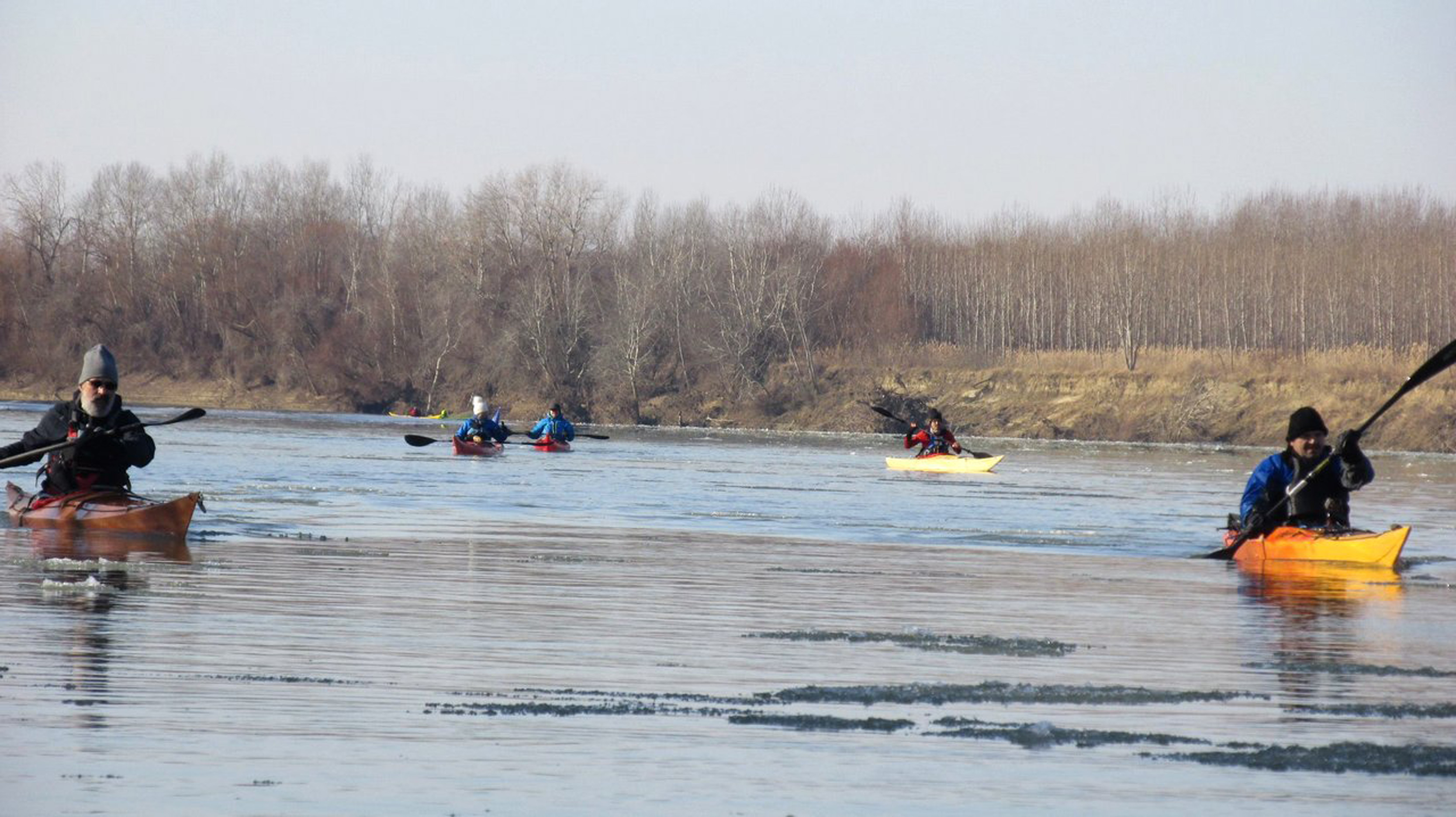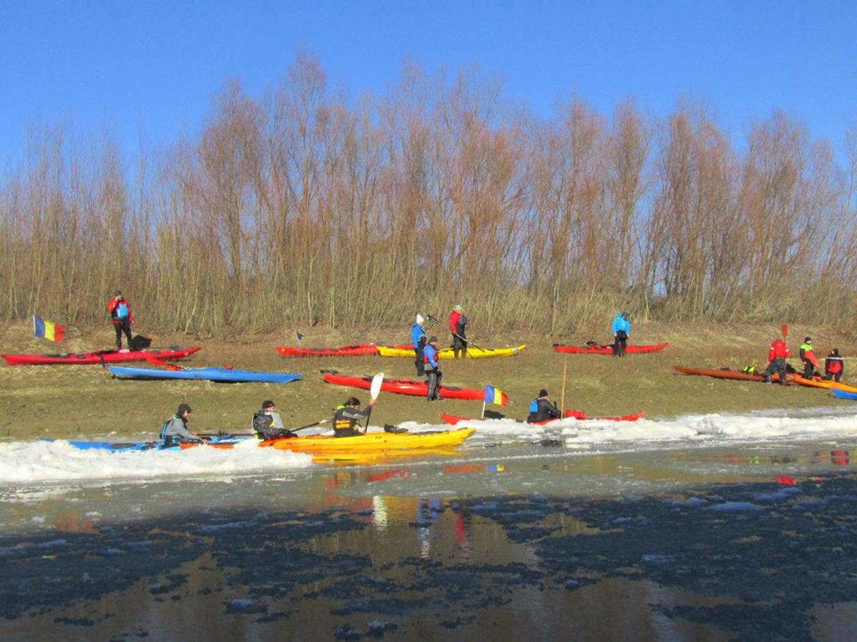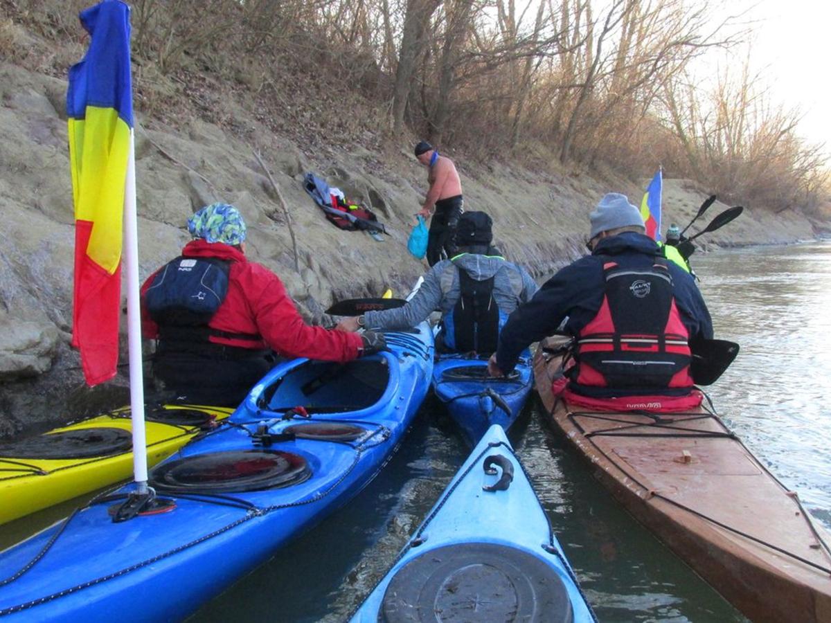 • o cursă de caiace ce începe din satul Latinu, Brăila, şi se termină la Galaţi tinde să devină o tradiţie în ziua dinaintea Bobotezei • pe 5 ianuarie, 31 de participanţi s-au urcat în caiace şi au vâslit cale de 37 kilometri, pe Buzău, Siret şi Dunăre, într-o adevărată cursă a prieteniei • traseul nu a fost lipsit de peripeţii, unele destul de riscante, dar până la urmă toată lumea a ajuns cu bine la destinaţie