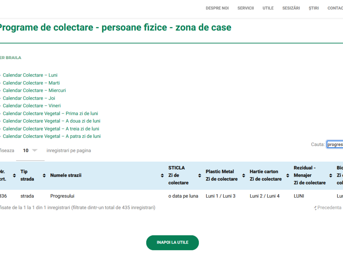 Conform calendarului oficial, următoarea colectare planificată a deșeurilor vegetale de pe străzile Progresul și Smârdan, din zona cartierelor Brăilița și Progresul este programată în data de 06.07.2023”.