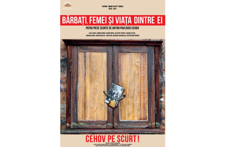 Duminică, 14 februarie, de la orele 18.00, la Sala Mare a Teatrului „Maria Filotti” se joacă spectacolul “BĂRBAȚI, FEMEI ȘI VIAȚA DINTRE EI” – patru piese scurte de Anton Pavlovici Cehov, direcția de scenă Victor Ioan Frunză.