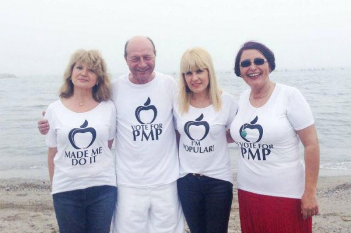 "Eram la Neptun, cei de la PMP au venit pe litoral şi i-am invitat la Neptun pentru câteva ore, am mai discutat, mi-au arătat tricourile şi am îmbrăcat un tricou. Putea fi cu orice. Am facut poze de grup şi cu fiecare în parte, că au vrut să avem poze împreună, le au pus pe Facebook, nu pe afişe electorale. Nu e vina lor că au fost preluate de toate televiziunile nişte fotografii într-o zi de vacanţă. Guvernul a dat vacanta, iar în vacanţă omul se îmbracă cum vrea", a afirmat Traian Băsescu.