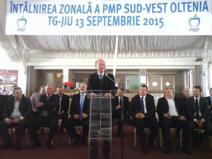Băsescu a participat la întâlnirea zonală a PMP sud-vest Oltenia, unde le-a vorbit celor câteva sute de delegaţi prezenţi din Mehedinţi, Olt, Gorj, Dolj şi Vâlcea despre obiectivele partidului, potrivit agerpres.ro.