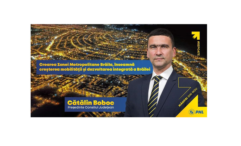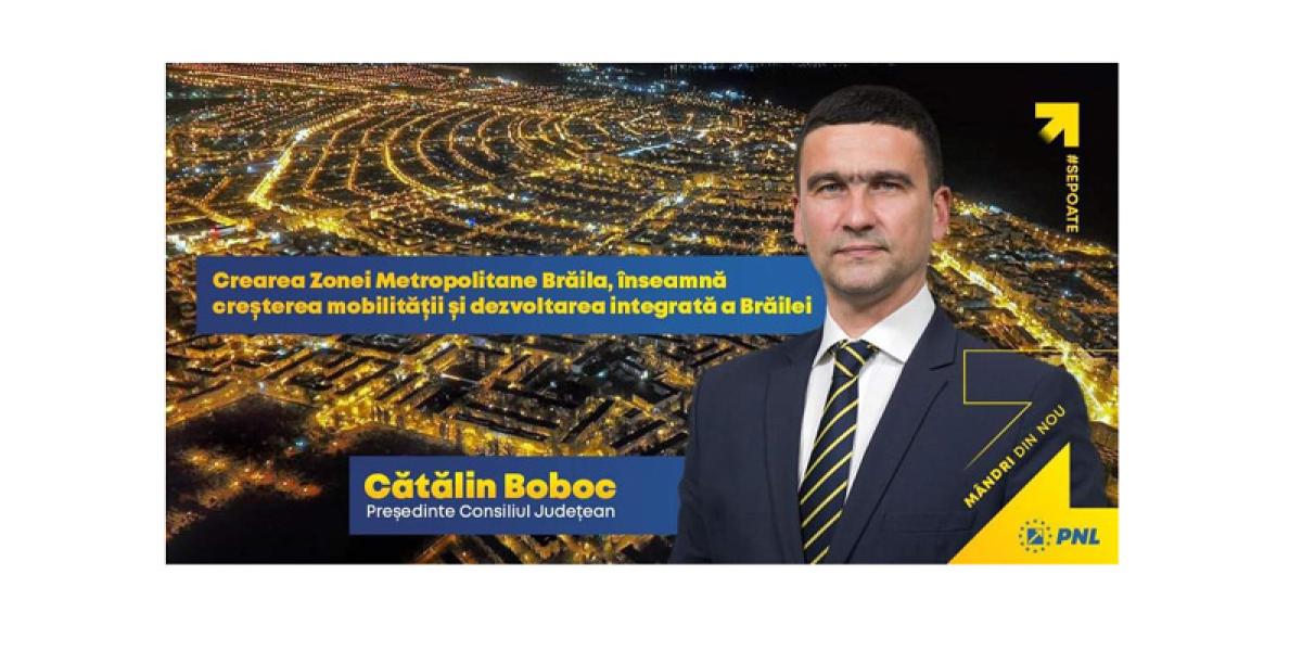 Candidatul PNL pentru preşedinţia Consiliului Judeţean Brăila, Cătălin Boboc, s-a înscris în campania “Bătălia pe proiecte” cu două puncte menite să dezvolte judeţul nostru, ambele parte dintr-un pachet electoral intitulat “Brăila activă”. Cele două proiecte propuse de liberal sunt: Înfiinţarea Zonei Metropolitane şi Dezvoltarea turismului.