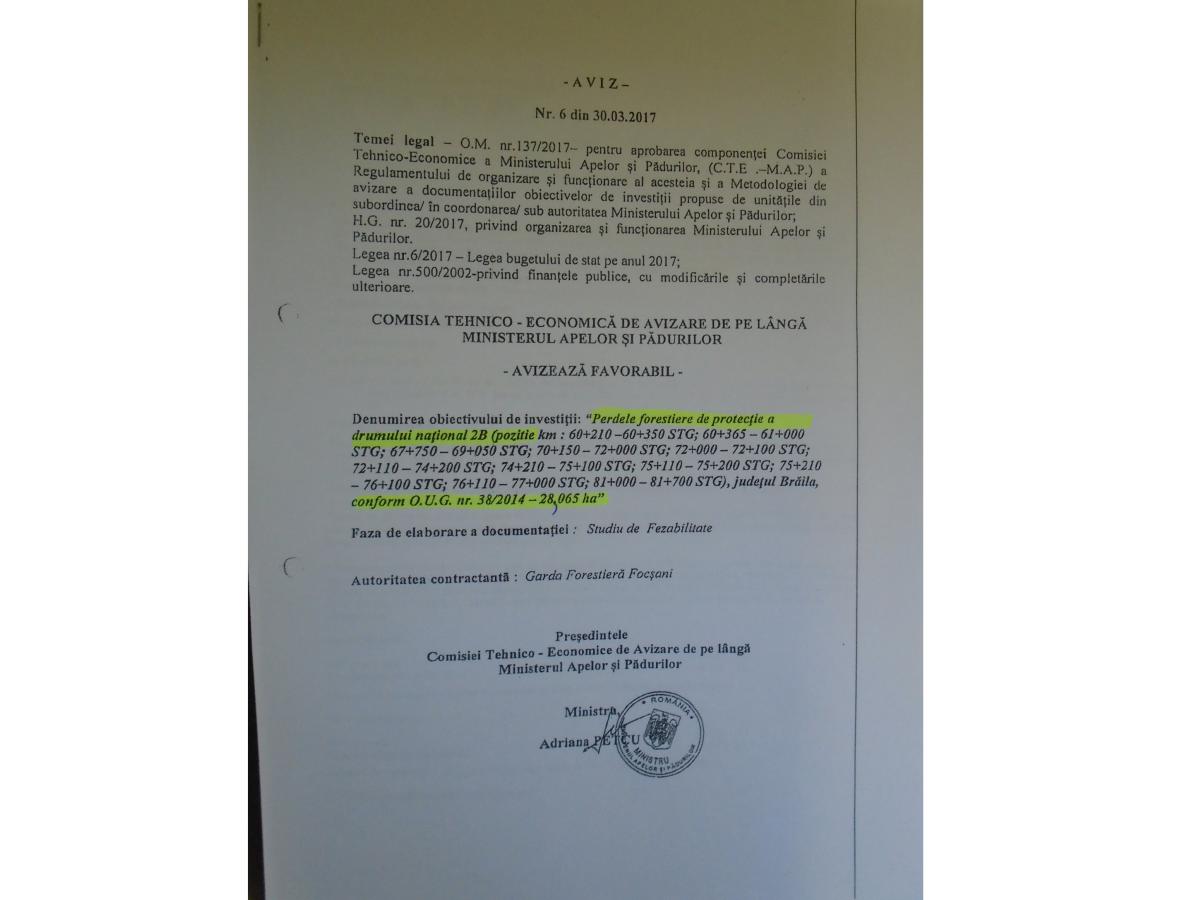 Avizat favorabil de către Comisia Tehnico-Economică din cadrul Ministerului Apelor şi Pădurilor, proiectul “Perdele forestiere de protecţie a Drumului Naţional 2B” a intrat pe ultima sută de metri. Este vorba de două perdele forestiere de 34,25 respectiv 28 hectare, apreciate la valoarea de 6,455 milioane lei (1,433 milioane euro, la cursul lei/euro de la 31 ianuarie 2017, respectiv 1 Euro#4,5 lei). Ordonatorul principal de credite este Ministerul Mediului şi Pădurilor, iar sursele de finanţare sunt reprezentate de alocaţii bugetare de la bugetul de stat prin bugetul Ministerului Apelor şi Pădurilor (în limita sumelor aprobate), alte surse legal constituite, venituri proprii.