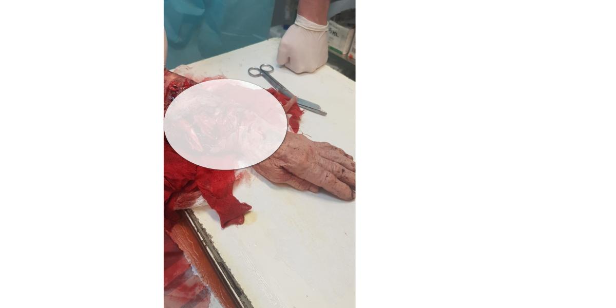Imagini şoc au fost transmise pe adresa redacţiei. Fotografiile sunt greu de privit. Semnalul de alarmă în ceea ce o priveşte pe octogenara atacată de câine a fost tras de dr. Gina ILie, şef al serviciului de Medicină Legală (SML). Aceasta ne-a spus că bătrâna ar fi fost muşcată de un câine maidanez, care părea a fi unul fără stăpân, sursa citată fiind îngrijorată din cauza faptului că, după cum spune aceasta, multe animale periculoase umblă libere prin oraş. Dr. Ilie a spus că bătrâna ar fi fost atacată de animal chiar în zona casei sale din municipiu. “Sunt prea multe animale periculoase lăsate prin oraş şi multe gunoaie, autorităţile nu iau măsuri pentru a strânge aceşti câini periculoşi şi a menţine curăţenia în oraş“, a spus şeful SML. Se pare, însă, că este vorba despre un câine din vecini, pe care femeia îl hrănea de obicei.