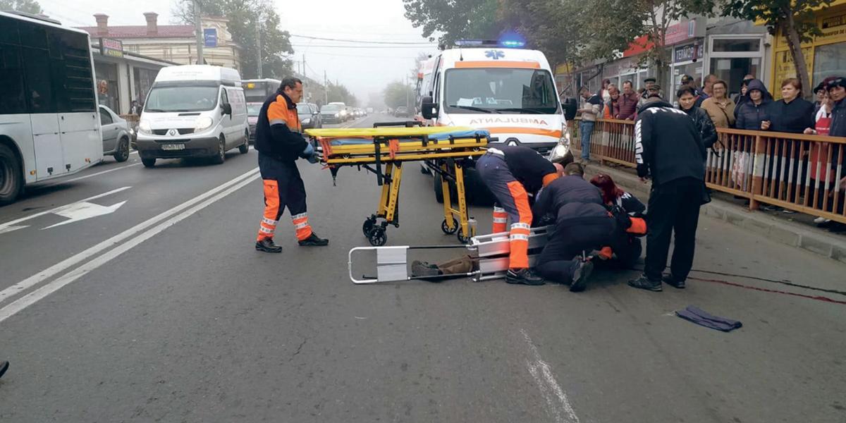 • ieri dimineaţă, un bătrân de 87 de ani a fost accidentat grav în timp ce traversa regulamentar pe marcaj în zona Piaţa Mare • acesta se angajase în trecerea străzii Griviţa şi a fost izbit de un autoturism care a virat stânga şi nu i-a acordat prioritate • bătrânul a fost accidentat grav la cap, pe şosea fiind o baltă de sânge, ieri medicii luptând pentru a-l menţine în viaţă