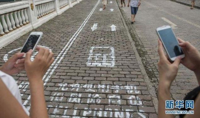 Dependenţii de telefoane din oraşul chinez Chongqing au privilegiul de a se bucura de o bandă numai a lor pentru a utiliza smartphone-urile în timp ce merg pe stradă, relatează Mediafax.