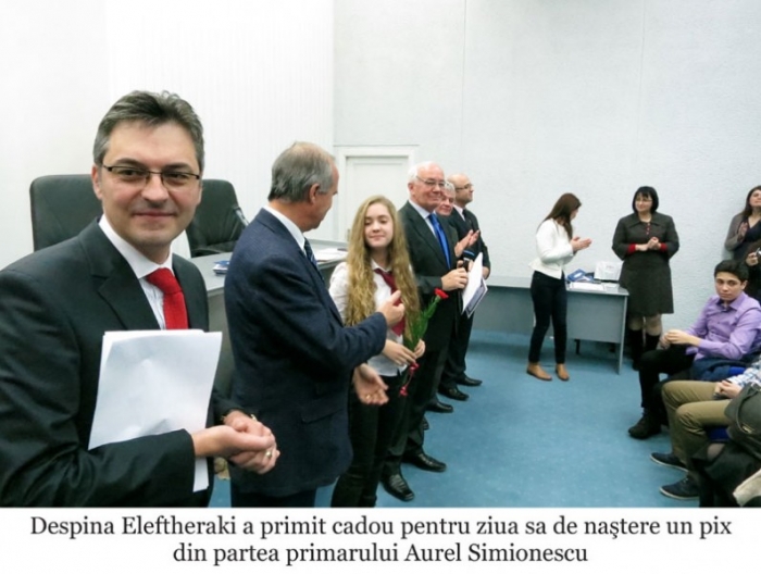 Despina Eleftheraki a obţinut premiul I la Olimpiada internaţională de neogreacă. Eleva în clasa a VII-a, la Şcoala Gimnazială "Mihu Dragomir", a avut, joi, parte de o surpriză din partea edilului-şef. Pentru că a aflat că tocmai în ziua premierii aceasta îşi serba ziua de naştere, Simionescu a ţinut să îi ofere un buchet suplimentar de flori şi un pix. Reamintim că, fiind vorba de o olimpiadă internaţională, aceasta a primit 9.600 lei din partea autorităţilor, iar cadrul didactic Evanghelos Garopoluos 4.800 lei. "Sunt onorată pentru premiu. Mulţumesc familiei, Şcolii «Mihu Dragomir» şi celor care m-au sprijinit", a declarat eleva după primirea diplomei. Un alt moment ce merită menţionat a avut loc în timpul premierei elevei de la Şcoala Gimnazială Şuţeşti, Steluţa Costelia Tiutiu, care a reuşit să obţină premiul I la Olimpiada internaţională de limba rromani, sub îndrumarea prof. Corina Ceamă. Pentru că s-a menţionat că eleva nu vorbeşte nativ această limbă şi că a învăţat-o aproape de la zero, că a muncit pentru acest lucru doi ani de zile, impresionat, primarul a rugat-o să spună "La mulţi ani!" în limba rromani. Eleva a primit 9.600 lei, iar cadrul didactic 4.800 lei. Rând pe rând, elevii şi profesorii au primit flori, diplome de excelenţă şi o broşură tipărită de autorităţi, intitulată "Gala Excelenţei în Educaţie", care conţine informaţii şi declaraţii ale olimpicilor.