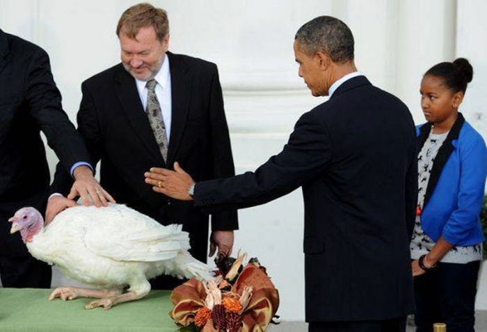 Doi înaripaţi grăsuni, care răspund anul acesta la numele "Caramel" şi "Popcorn", îşi vor cunoaşte ora de glorie în Grădina cu trandafiri (Rose garden) a reşedinţei prezidenţiale, când vor fi aleşi de "liderul lumii libere" în faţa a zeci de reporteri şi fotografi.