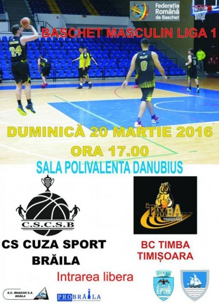 Duminică, de la ora 17.00, Cuza Sport vizează prima victorie din turul turneului semifinal al Ligii întâi la baschet masculin, adversara elevilor lui Mircea Totolici fiind BC Timba Timişoara. Brăilenii au ca obiectiv obţinerea primului succes din această fază a competiţiei, misiune destul de dificilă ţinând cont de faptul că formaţia timişoreană se află pe locul al treilea, cu 6 puncte, cu un punct mai puţin decât primele două clasate, Municipal Olimpic Baia Mare şi CS Municipal Ploieşti.