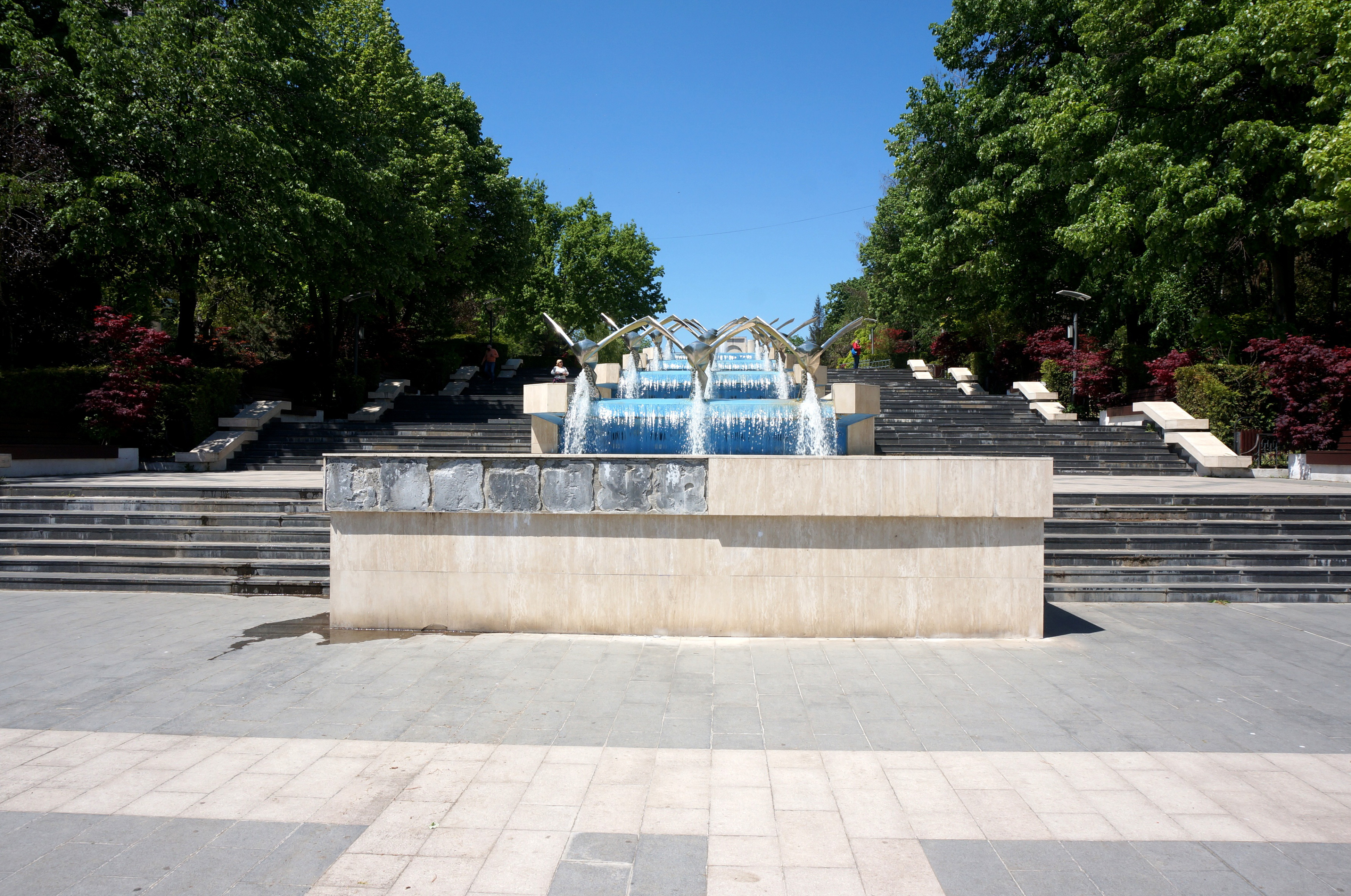 Potrivit constructorului, pe 23 august 1989, s-au montat piesele mari (egretele) și inelul numit ancoră. Ulterior, în anii 1990-1991, s-au executat și celelate două fântâni, s-au montat delfinii și s-a finalizat ansamblul. Toate piesele montate au fost șlefuite cu șmirghel din ce în ce mai fin, la o anumită turație, ca să nu fie afectată calitatea materialului. Inițial, instalația a constat în distribuții mecanice, însă acum, după ce fântâna a fost reabilitată de firma Tancrad, totul este cu comandă electronică.