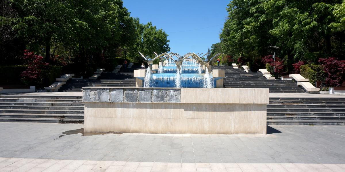 Lucrări de întreținere a soclului uneia dintre cele trei Fântâni Cinetice din zona Palatului Administrativ (Esplanada Dunării), după ce mai multe plăci din Travertin s-au desprins și au căzut.