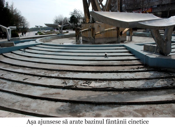 Aşa cum se ştie, cei care au întocmit proiectul de reabilitare au hotărât ca bazinul fântânii cinetice să fie complet reamenajat. Astfel, soclul care susţine piesele de inox a fost făcut în trepte şi acoperit cu vopsea. Această decizie a fost criticată încă de la început de mulţi brăileni, nemulţumiţi de aspectul bazinului şi convinşi că vopseaua nu va rezista prea mult. Criticile exprimate atunci s-au dovedit întemeiate, fântâna degradându-se nepermis de repede. Cu toate acestea, vopsirea rămâne singura soluţie pentru reabilitare. "În proiectul de reabilitare a fost prevăzută vopsirea bazinului, deci altă soluţie nu se poate aplica. Obiectivul se află în perioada de cinci ani de garanţie, deci constructorul trebuie să remedieze problema", ne declara, în luna martie, Iuliana Neagu, directorul Direcţiei Programe Europene din cadrul Primăriei Brăila. Aceasta promitea, la vremea respectivă, că reparaţiile vor începe în cel mai scurt timp. Au început, însă, abia acum, în iulie.