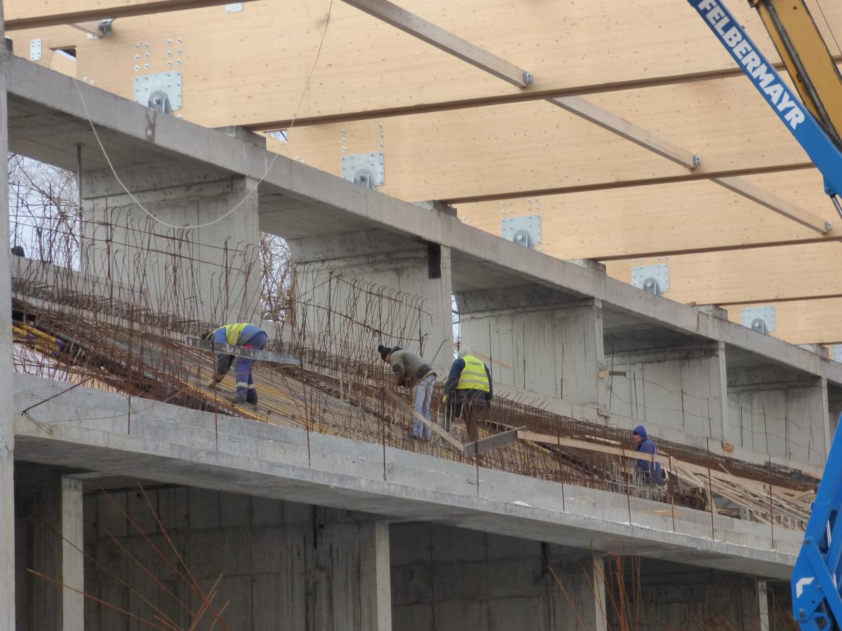 Este afirmaţia şi satisfacţia tânărului inginer Bogdan Vrânceanu, originar din Oneşti, extrem de modest, dar bun profesionist. Este şeful de şantier. Se preocupă acum de circa 50 de muncitori dulgheri care lucrează la tribune şi pentru care vremea rea nu a fost un impediment, iar forţa de muncă va ajunge la 160 de oameni. Interlocutorul nostru este bucuros de calitatea lucrărilor, de stadiile fizice realizate: 80% în cazul structurii din beton şi lemn, 100% la infrastructură, dar şi de calitatea foarte bună a betoanelor folosite.