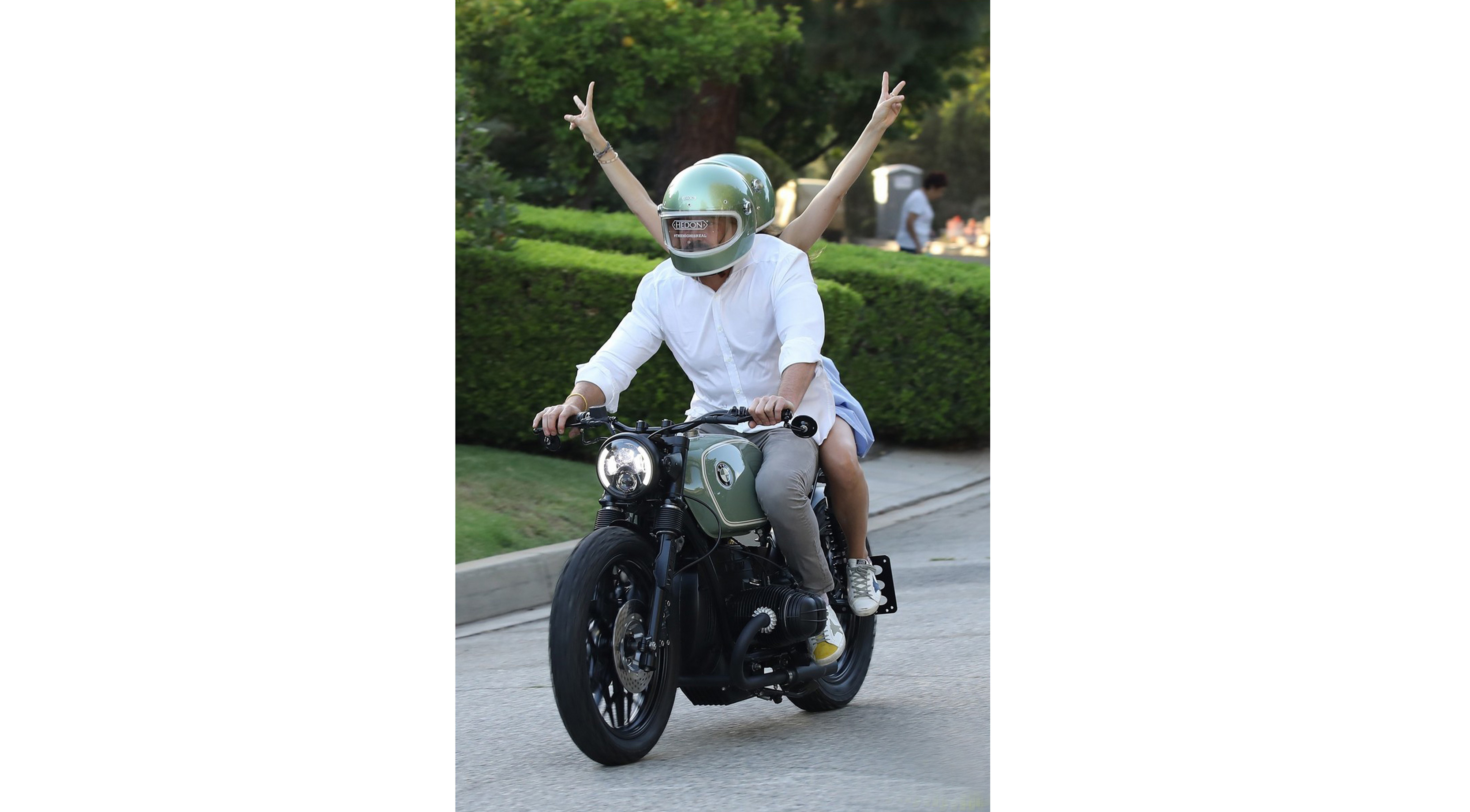 Cuplul a fost surprins pe 15, ziua de naştere a lui Affleck, pe o motocicletă BMW, pe care ar fi primit-o cadou. Affleck şi Armas purtau căşti de protectţie asortate, în aceeaşi culoare ca motocicleta.