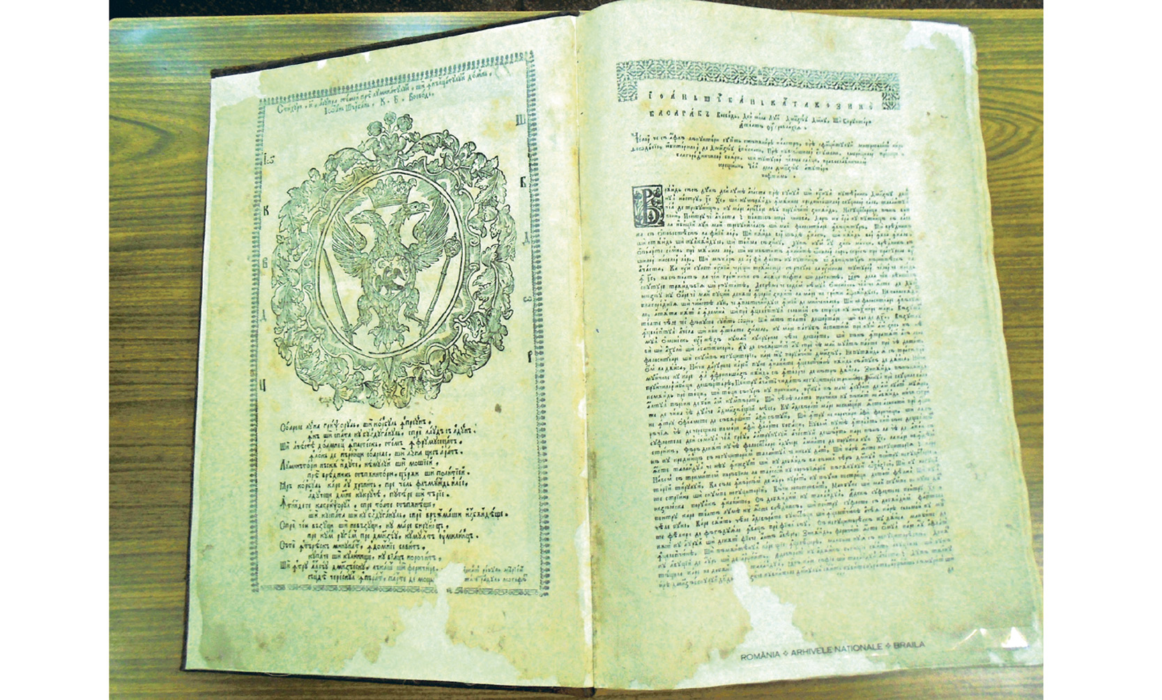 • Arhivele păstrează, la loc de cinste, Biblia lui Şerban Cantacuzino, de la 1688, prima traducere integrală a Bibliei în limba română - “piatra de temelie a limbii române scrise” • în anii '50, Biblia a fost la un pas de a fi dusă la topit, la combinatul Letea, alături de multe alte cărţi religioase • ea a fost salvată de profesorul Nicolae Mocioiu, directorul Arhivelor • Biblia a aparţinut, cândva, bibliotecii din Brăila •cu o valoare de inventar de 10.000 de lei, Biblia lui Cantacuzino este însă inestimabilă, existând doar câteva exemplare în toată ţara