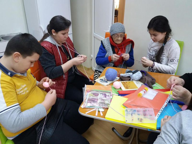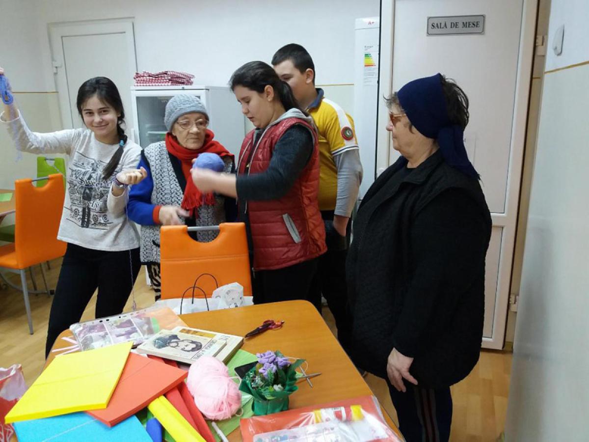 La ultima întâlnire, care a avut loc la sfârşitul săptămânii trecute, bunicii au avut ocazia să se întâlnească cu copiii de la Şcoala Gimnazială „Fănuş Neagu” şi să tricoteze împreună ceva uşor pentru început - bentiţe. Copiii au adus lână, iar bunicii andrele şi au petrecut timpul într-un mod plăcut, într-o atmosferă caldă şi veselă pentru ambele generaţii. Zâmbetele şi îmbrăţişările copiilor au reuşit să le umple vârstnicilor inima de bucurie preţ de 2 ore, alungându-le tristeţea şi singurătatea.