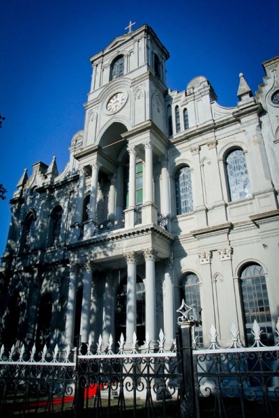 Arhitectul bisericii a reuşit să creeze o construcţie unică şi deosebită cu meşteri italieni, un lăcaş în care domină elemente antice elene, gotice şi renascentiste, într-o combinaţie omogenă a stilului neoclasic, caracteristic de altfel secolului al XIX-lea, biserica fiind construită după modelul bazilicii bizantine.