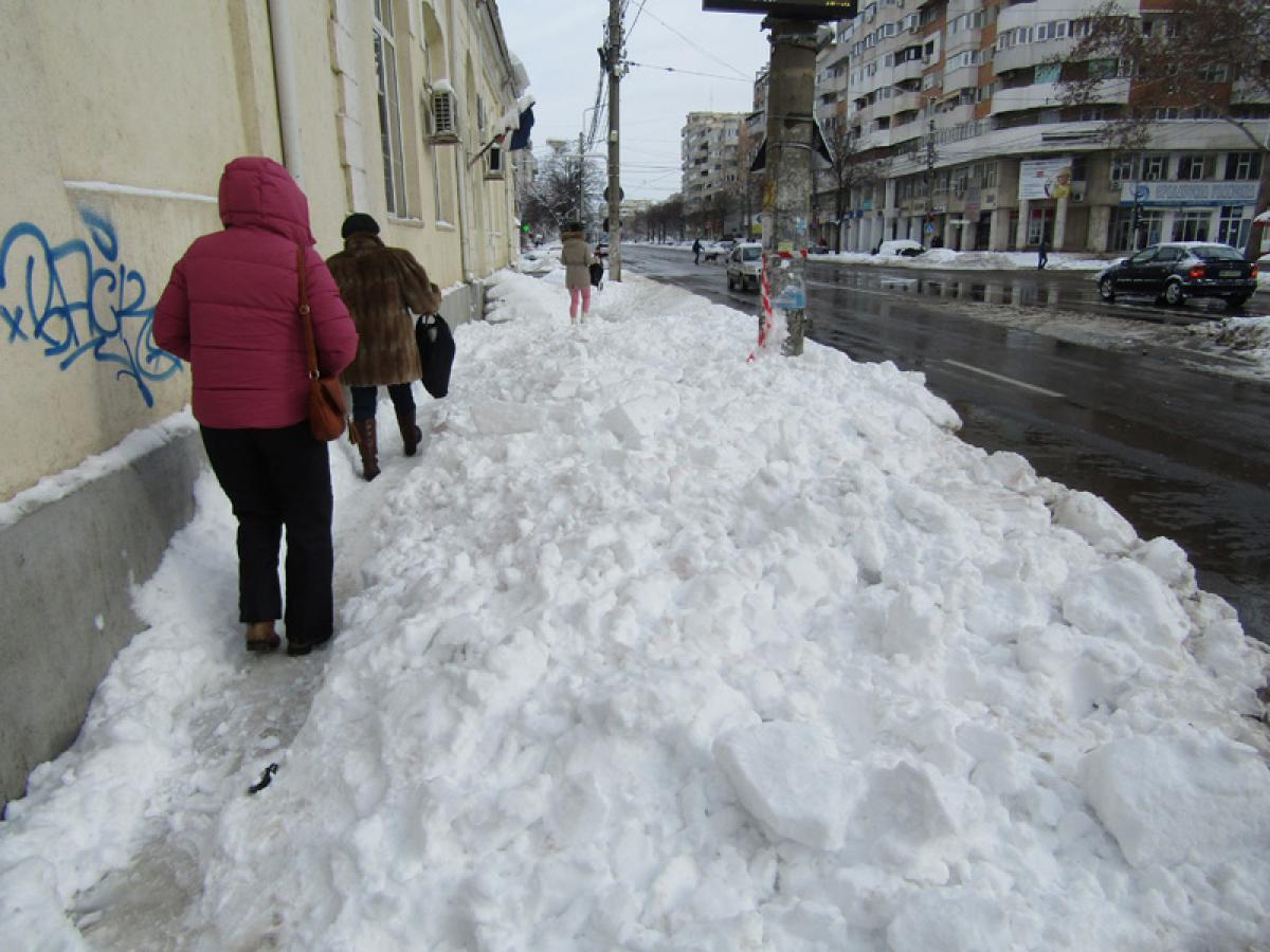 Nimeni nu contestă condițiile dificile în care se face deszăpezirea, însă necazurile se accentuează atunci când lucrurile se fac anapoda. De exemplu, în cele două stații de autobuz din zona liceului Murgoci și a fostului Palat al Telefoanelor, zăpada s-a degajat doar cât ține o ”stație smart”, iar atunci când vin simultan 2-3 autobuze, călătorii sunt nevoiți să se strecoare pe jumătate de metru, între autobuze și nămeții de zăpadă. La Concordia, dinspre Griviței, alte surprize nedorite: în dreptul Școlii Walldorf, o singură persoană se chinuia la un moment dat să facă o pârtie în zăpada “beton” de circa o jumătate de metru, iar pietonii (fără să vadă ce atârnă pe acoperiș) fac adevărate exerciții de escaladă, ținându-se unul de altul sau de pereți. În stație, trecerile de pietoni sunt un alt examen greu din cauza bălților și zăpezii necurățate suficient. Iar unde apa trece de 20 cm, pietonii și-au făcut o cărare îngustă prin zăpadă. Din zona Spitalului de Psihiatrie și până la Murgoci, dar și pe trotuarul de la Direcția Agricolă, abia ieri s-a intervenit cu două echipe de salubriști pentru spargerea (cu circa 8-10 metri pe oră) a zăpezii de o palmă - două, înghețată bocnă. Când lucrurile ar fi fost mult mai simplu și productiv de rezolvat, dacă se intervenea din timp cu utilaje gen minifreze. Chiar și către arteziană, până la ANAF! Păi, altfel cum să nu fie valabile zicale precum “coperativa munca în zadar” și “noi muncim, nu gândim”…