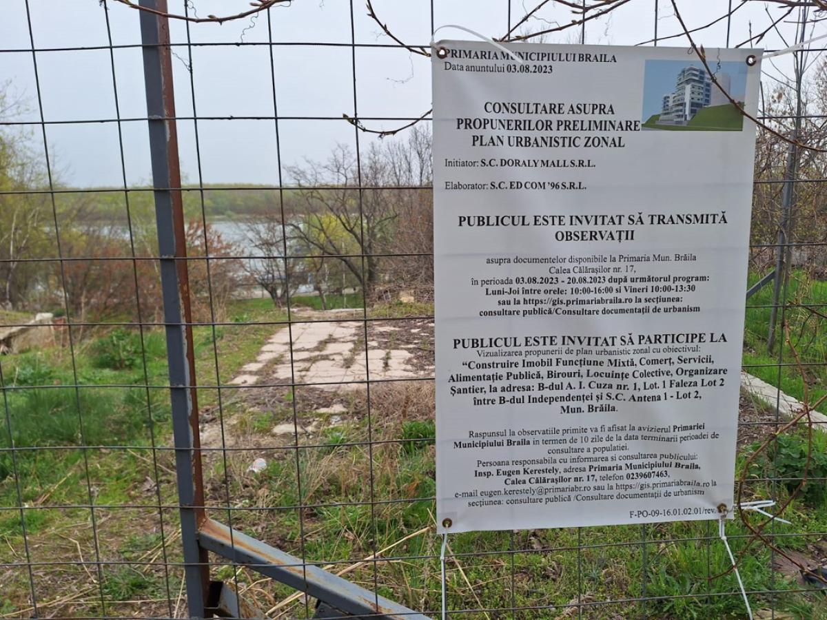 De precizat că documentația a fost supusă informării și consultării publicului prin mai multe metode (anunț pe site-ul Primăriei, la avizier, montarea de către investitor a unui panou plus anunț în cotidianul ”Obiectiv – Vocea Brăilei”), însă nu s-au formulat obiecțiuni, după cum informează municipalitatea.