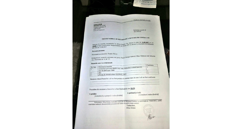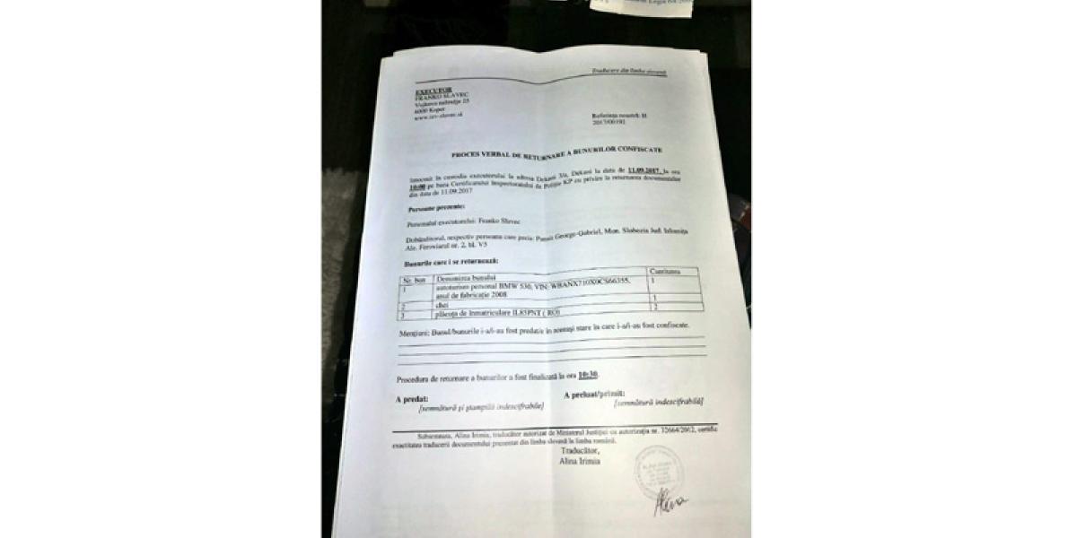 Proprietarul de BMW ne-a pus la dispoziţie fotografii, dar şi actele emise de autorităţile din Slovenia, pentru a arăta că ceea ce susţine este adevărat, dar şi în speranţa că vreo instituţie a statului va se va sesiza în legătură cu problema lui şi îi va recomanda exact de să facă pentru a-şi recupera bunul.