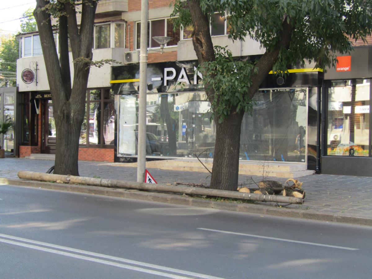 Dacă stâlpii distruși la ultima furtună, din luna iulie, și aflați în fața noului sediu al Primăriei de pe Calea Călărașilor au fost până la urmă, după vreo două săptămâni, înlocuiți, într-un târziu le-a venit rândul și celor din zona intersecției Căii Călărași cu strada Unirii. Unde, firma Uniel a procedat la recuperarea cablurilor căzute la pământ și întinderea lor, însă tot pe un stâlp vechi, aflat într-o șuie, lângă unul nou abia montat dar încă neechipat. Vizavi, pe trotuar, este pus pe poziție un alt stâlp nou, la baza căruia zace cel retezat și rupt de furtună. Și care, zile întregi, a făcut casă bună cu niște butuci și crengi ridicate abia după ce s-au uscat.
