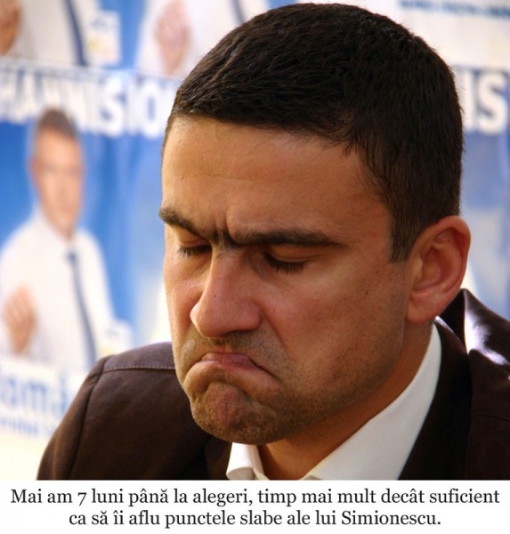 Iată-l pe Boboc în sediul partidului, stând într-un fotoliu, înconjurat de lingăii care i-au tot suflat în ureche că este cel mai bun, că nu are cum să nu îl bată pe pesedistul Aurel Simionescu. Boboc stă cu capul sprijinit în palma dreaptă şi din când în când face gesturi aprobatoare către cei care îi cântă în strună, ca şi cum le-ar transmite „Continuaţi, băieţi, continuaţi". Şi e logic să fie aşa, căci cui nu i-ar plăcea să fie pupat în cur, să fie linguşit? Treaba asta îl relaxează vizibil pe Boboc, care pare mai încordat ca niciodată.