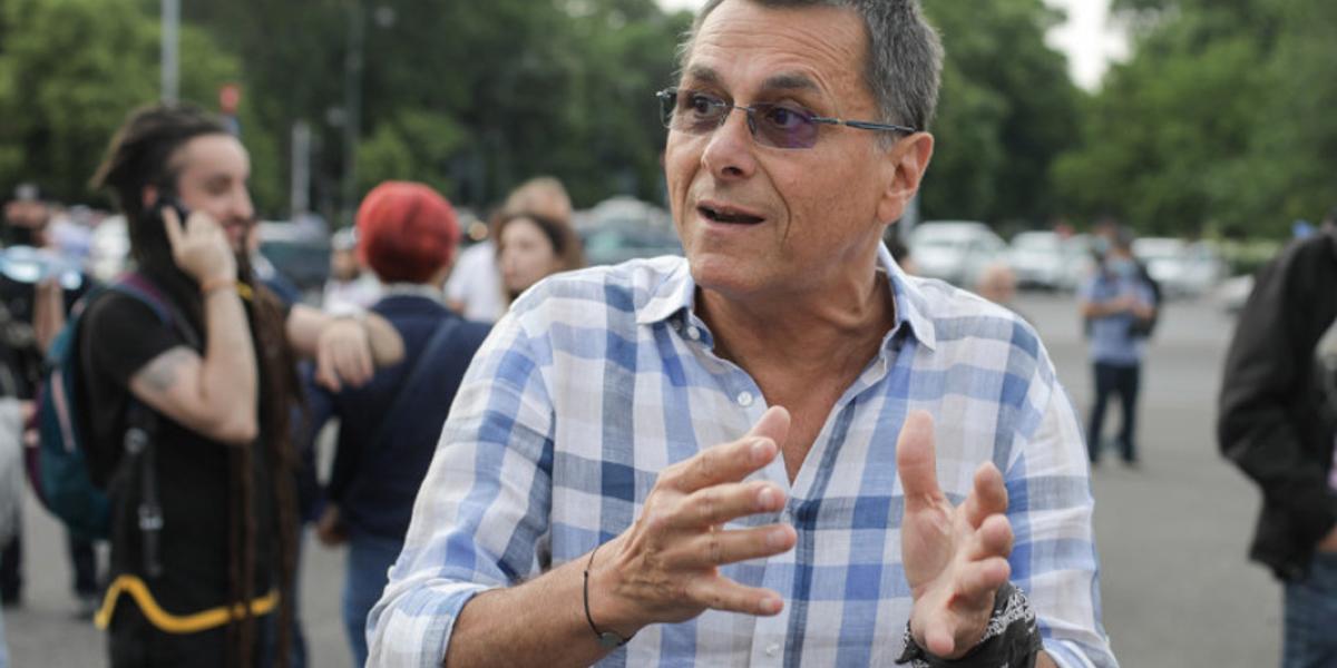 În luna mai a anului trecut, Bogdan Stanoevici a participat la un protest împotriva măsurilor sanitare, alături de alți zeci de oameni. Stanoevici s-a pupat și îmbrățișat cu cei prezenți la protest.