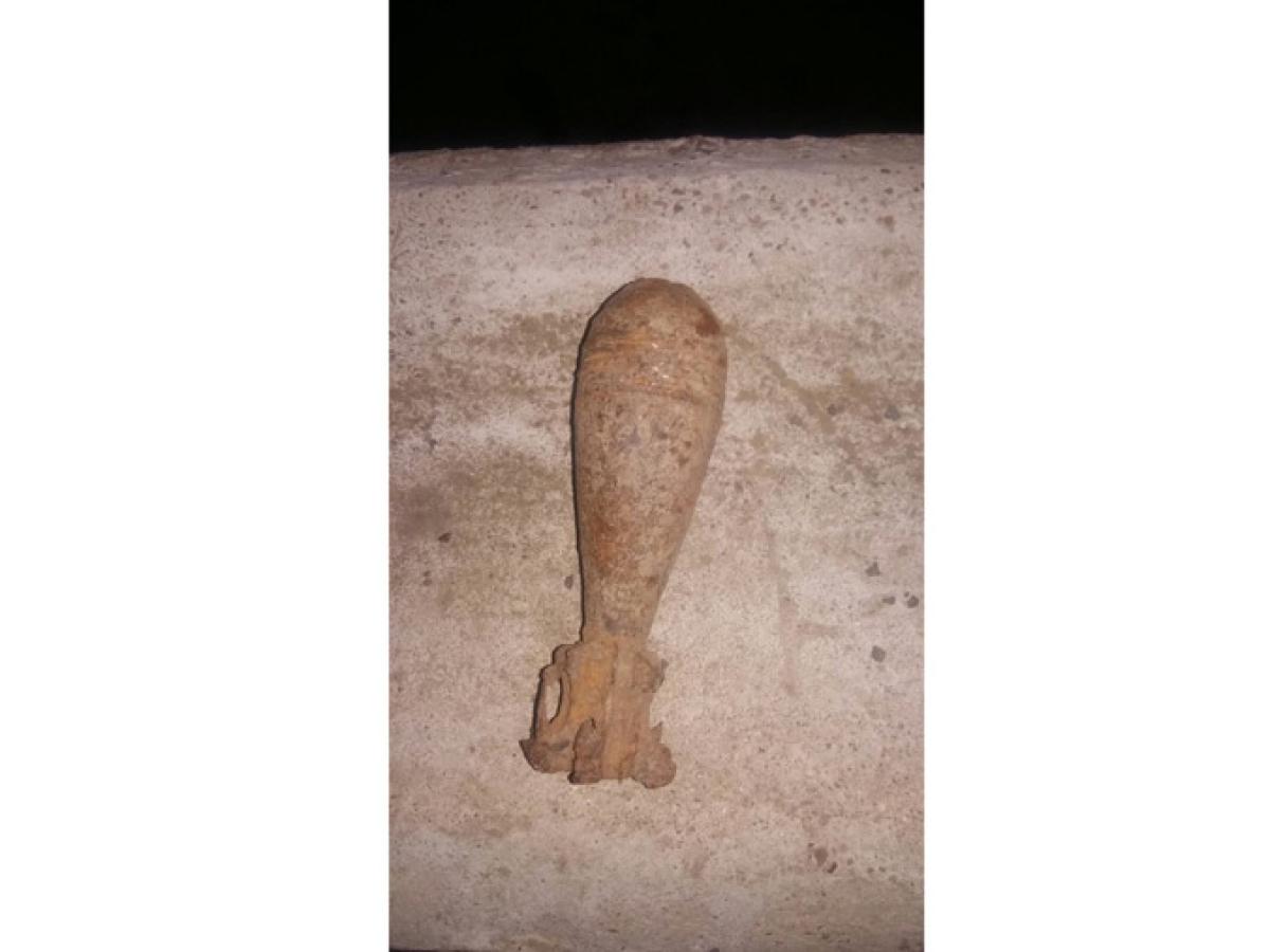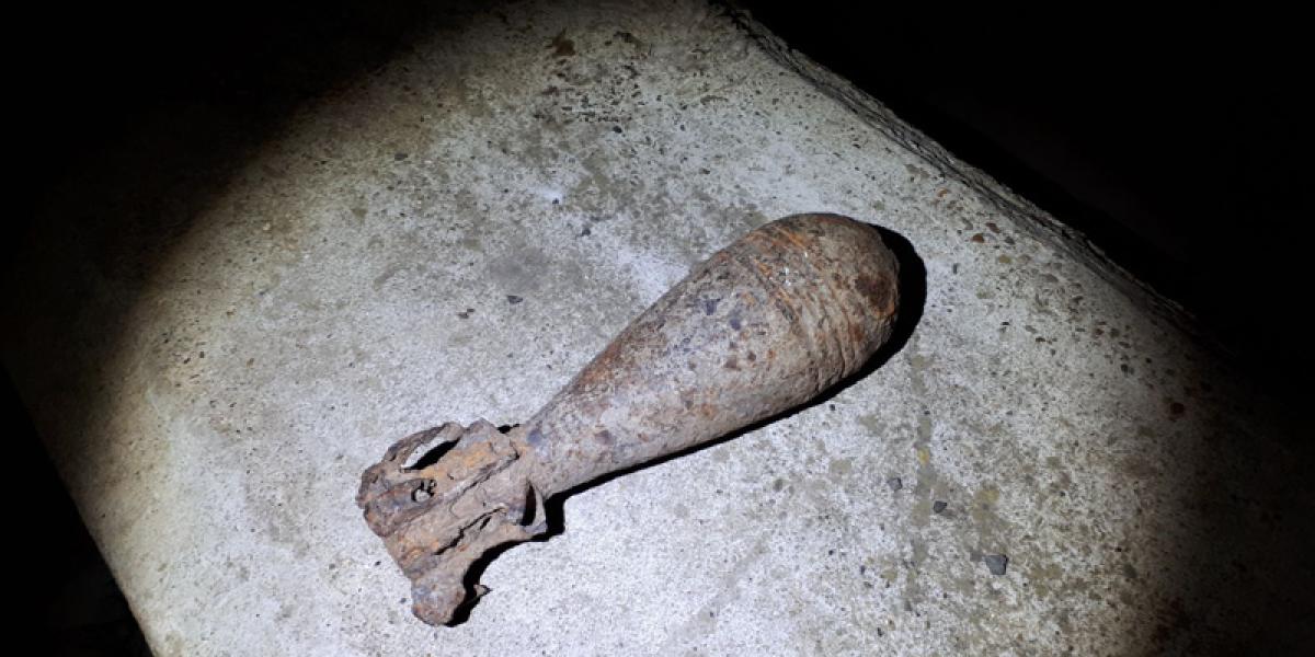 • în urma unei lucrări, proprietarul casei a descoperit un proiectil de aruncător, calibrul 60 mm, în stare avansată de oxidare • era vorba despre o bombă din cel de-al Doilea Război Mondial • s-a dat alarma, iar pompierii şi jandarmii au intervenit imediat