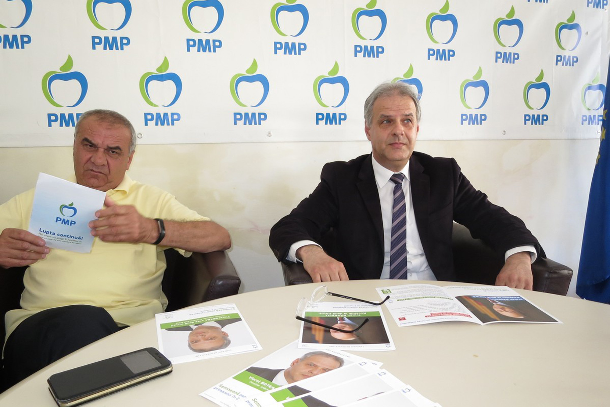 Botea a prezentat cu această ocazie şi câteva dintre pliantele pe care membrii partidului le vor distribui la nivelul municipiului şi judeţului. Interesant este că în cadrul acestora regăsim sigla PSD-ului, partenerul pe plan local al PMP-iştilor brăileni, care este tăiată şi însoţită de o serie de acuzaţii la adresa social-democraţilor.