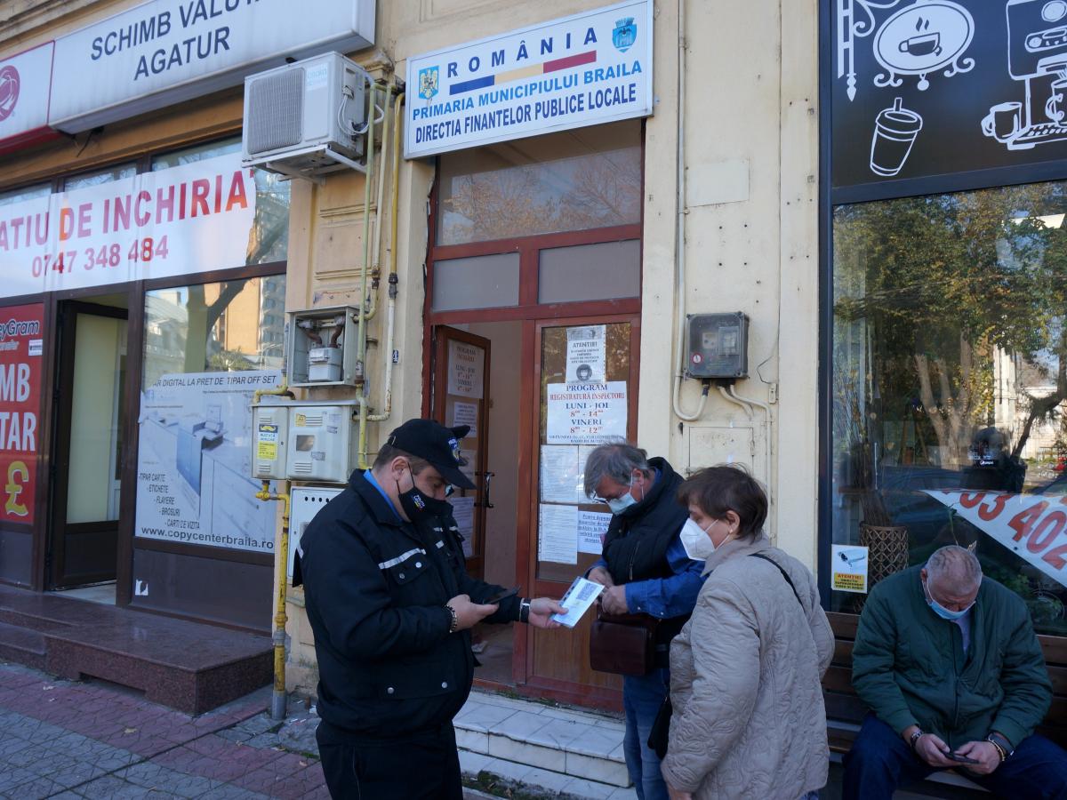 La Direcția Generală Regională a Finanțelor Publice Galați, Administrația Județeană a Finanțelor Publice Brăila, de asemenea s-au găsit unele soluții pentru ca problemele tuturor contribuabililor să își găsească rezolvare. După cum ne-a explicat Mihaela Ciorășteanu (directorul executiv) instituția aplică legea integral. Astfel că toate persoanele care vor să intre în sediu trebuie să prezinte dovada vaccinării, a trecerii prin boală sau test. Totuși, aceasta a ținut să sublinieze că de câțiva ani site-ul ANAF a dezvoltat o platformă online, astfel că prezența fizică a cetățenilor la sediu nu se mai justifică. Dacă totuși cei nevaccinați vor să vină la Finanțe, potrivit lui Ciorășteanu, există o cutie afară unde pot fi lăsate documente, corespondență, care ulterior este preluată și prelucrată. Totuși, o problemă a apărut în contextul în care oamenii au venit cu sume de bani, însă nefiind vaccinați nu au putut intra la casierie. Astfel, fie au plătit online, fie au delegat pe cineva vaccinat să facă asta în numele lor.