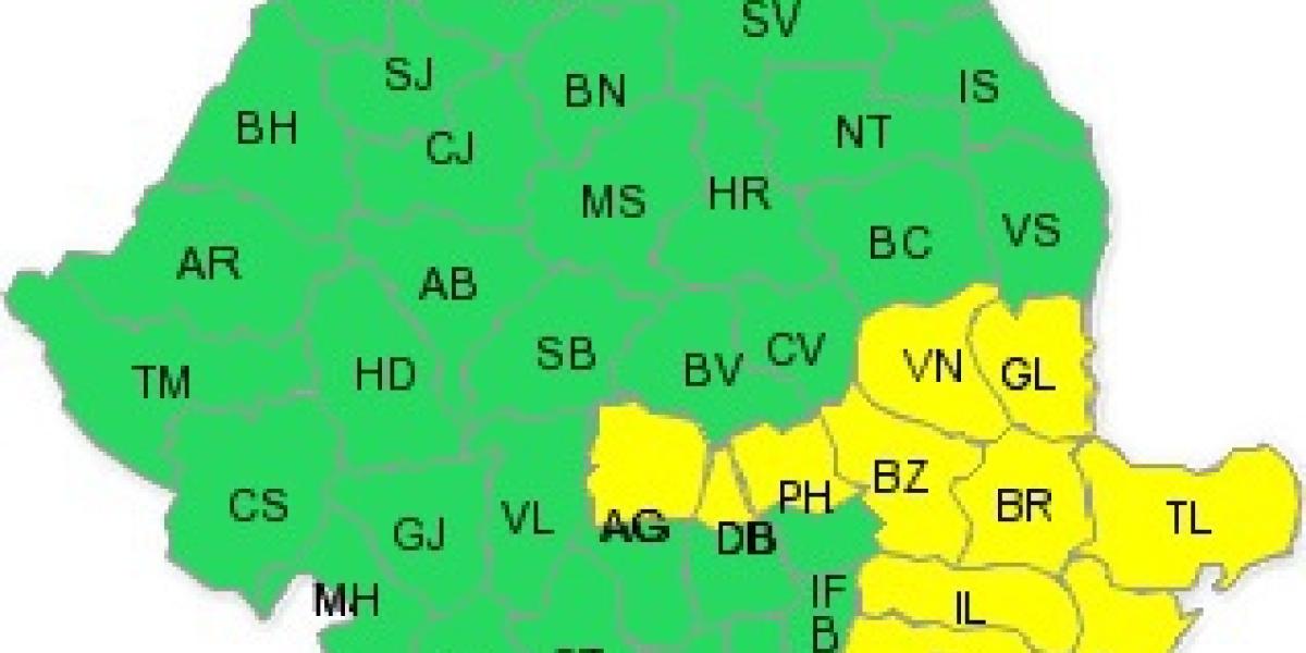 Sub atenționarea ANM se află Dobrogea, estul Munteniei şi sudul Moldovei, zone unde vântul va avea intensificări susţinute, cu viteze la rafală de 55...65 km/h. Îndeosebi pe litoral şi în zona de munte a judeţelor Argeş, Dâmboviţa, Prahova, Buzău şi Vrancea, temporar vor fi rafale de peste 70 km/h.