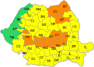De asemenea, ANM a emis și un cod portocaliu, cu interval de valabilitate: 13 noiembrie, orele 11.00 – 18.00.