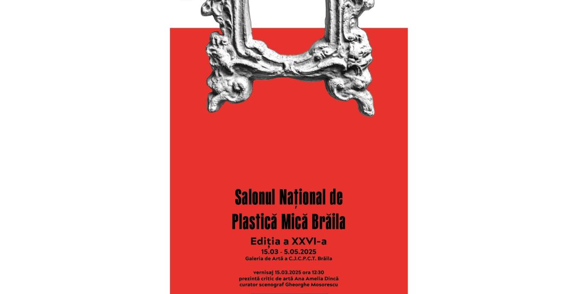 Consiliul Judeţean Brăila, Primăria Municipiului Brăila, Centrul Judeţean pentru Conservarea şi Promovarea Culturii Tradiţionale (Centrul de Creație) și Uniunea Artiștilor Plastici din România (UAPR) - Filiala Brăila a organizat pentru sâmbătă, 15 martie, începând cu ora 12:30, vernisajul Salonului Național de Plastică Mică - Ediția a XXVI-a. Evenimentul va avea loc la Galeria de Artă a CJCPCT Brăila, din Piața Traian nr. 2 (Centrul Istoric al municipiului).