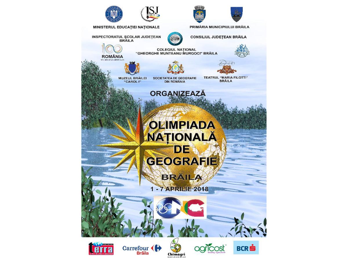 Zilele acestea, Brăila găzduieşte Olimpiada Naţională de Geografie, iar cei 221 de elevi participanţi din toată ţara trăiesc emoţiile competiţiei. Evenimentul este organizat de Inspectoratul Şcolar Judeţean Brăila şi Ministerul Educaţiei, în colaborare cu Primăria Brăila, Consiliul Judeţean Brăila, Societatea Română de Geografie, Colegiul Naţional “Gh. M. Murgoci”, Teatrul “Maria Filotti” şi Muzeul Brăilei “Carol I”.