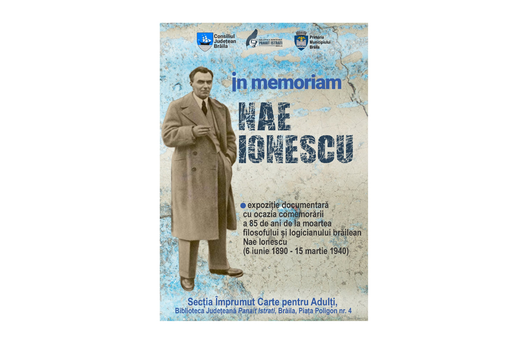 Secția Împrumut pentru Adulți a Bibliotecii Județene „Panait Istrati” Brăila organizează, în perioada 14 martie - 15 aprilie, expoziția documentară intitulată „In memoriam Nae Ionescu”, în semn de omagiu adus brăileanului care s-a remarcat ca reputat filosof, logician, profesor, publicist și mentor al tinerei generații interbelice. Filosofia lui Nae Ionescu a fost numită „trăirism”, o variantă românească a „vitalismului” german, incluzând elemente mistice și teologice din tradiția creștin-ortodoxă axată pe preponderența trăirii asupra intelectului.