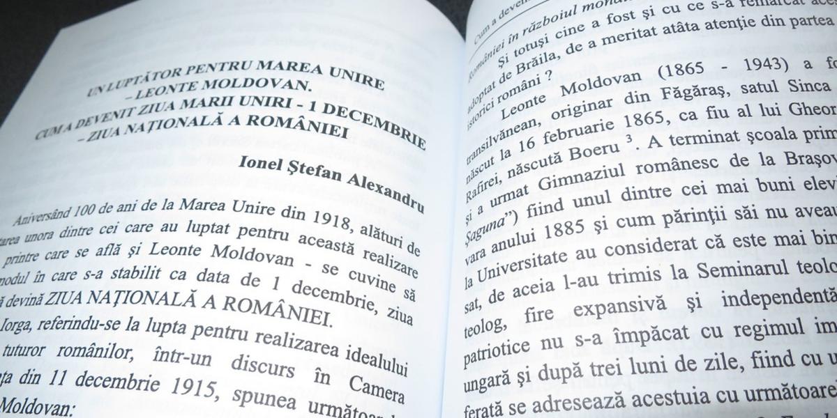 • este vorba despre două lucrări scrise de prof. dr. Ionel Alexandru • “Un luptător pentru Marea Unire, Leonte Moldovan” este studiul fostului senator, publicat într-o carte dedicată centenarului Primului Război Mondial - “Contribuţia Elitelor la Întregirea României” • la sesiunea din 2019 a Academiei Oamenilor de Ştiinţă din România, Alexandru a susţinut o nouă lucrare legată de Brăila