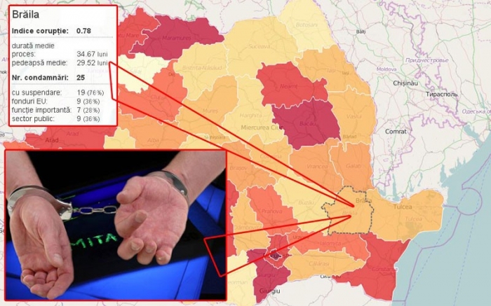 Revenind, potrivit monitorizării celor de la "Alianţa pentru o Românie Curată", în Brăila au fost finalizate 25 procese (în perioada 2010 - 2014), 76% fiind condamnări cu suspendare, în 9 cazuri au fost implicate fonduri UE şi în tot atâtea condamnaţii lucrau în sectorul public, mulţi dintre ei având funcţii de conducere. De asemenea, durata medie a proceselor este de 34,6 luni, însă avem situaţii în care un proces a durat doar 9 luni, aşa cum este cazul inculpatei Cîrnu Ionica, referent principal în cadrul Agenţiei de Plăţi şi Intervenţii pentru Agricultură (APIA) Brăila - Centrul Local Cireşu, condamnată la 2 ani de închisoare cu suspendare. Dar avem şi extrema în care un proces a durat nu mai puţin de 60 de luni, adică 5 ani, aşa cum s-a întâmplat în dosarul privind lotul de inculpaţi în "tunul" financiar de la SC "PAL" SA Brăila (Anna Maria Şerban, Dan Boală, Iulian Sgîrcitu - toţi salariaţi ai PAL şi Aurelia Vlăgeanu - funcţionar vamal) în care prejudiciul estimat adus bugetului statului a fost de câteva milioane de euro.