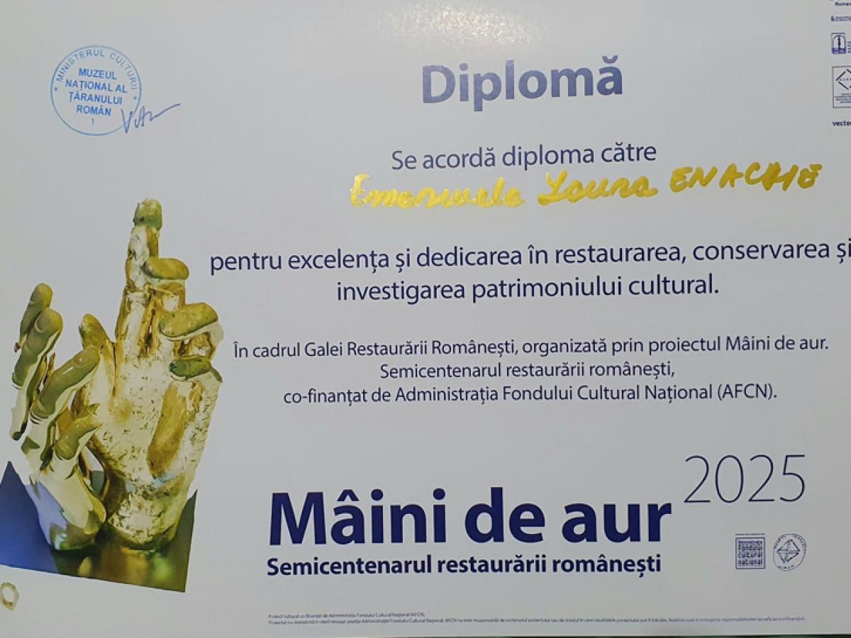 Cu această ocazie, s-a înmânat Trofeul „Mâini de aur” seniorilor și diplome restauratorilor cu o cariera amplă, precum și volumul evenimentului. Emanuela Enache, Expert restaurator pictură în cadrul Muzeului Brăilei „Carol I”, a primit Diploma pentru dedicare în restaurare, având lucrarea „Metodologia de restaurare a picturii de sec XIX - Peisaj Zurich” , ce a fost cuprinsă în volumul aniversar al Galei Restaurării Românești.