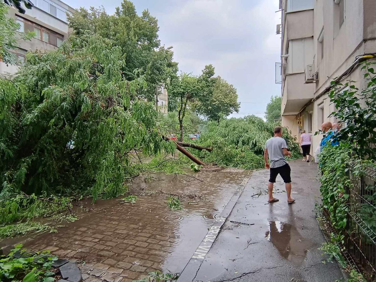ȘTIRE INIȚIALĂ La numai două zile după ploaia torențială care a inundat nenumărate zone din municipiu, furtuna din această seară a adus din nou inundații dar și foarte mulți copaci doborâți de vântul puternic. Primim informații despre mai multe autoturisme avariate după ce au fost lovite de arborii care au cedat sub furtuna dezlănțuită. Sunt zone din municipiu și județ unde au fost rupte cabluri de electricitate sau de telecomunicații. Echipe ale Electrica evaluează situația în teren. Deocamdată, Inspectoratul pentru Situații de Urgență nu a emis niciun comunicat oficial. Ni s-a transmis să se centralizează datele și că vor fi făcute publice în cel mai scurt timp.