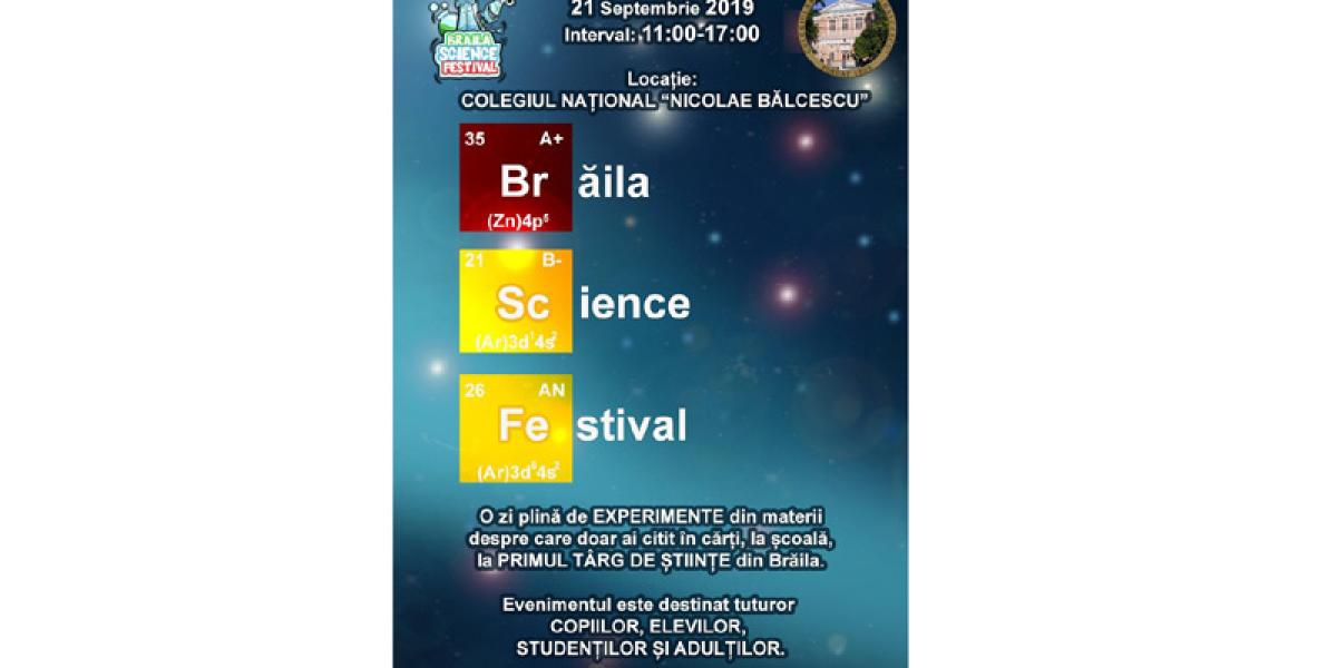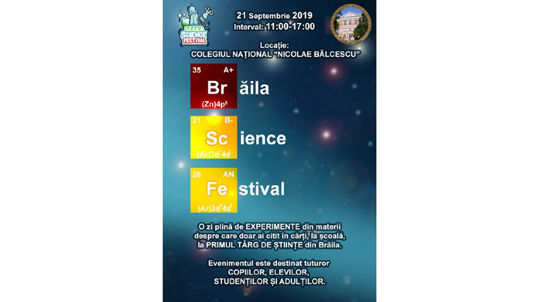 Crezi că ştiinţele sunt anoste şi abstracte? Crezi că înţelegerea lumii care te înconjoară este rezervată unor oameni selecţi? Crezi că a înţelege biologia, chimia, fizica, robotica şi alte domenii este inutil, chiar imposibil? Atunci vino să îţi demonstrăm contrariul la Brăila Science Festival, primul festival de ştiinţe din oraşul nostru, eveniment ce va avea loc pe 21 septembrie, între orele 11.00-17.00, la Colegiul Naţional “Nicolae Bălcescu”.