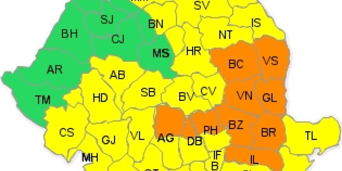 Administraţia Naţională de Meteorologie a emis o avertizare de cod galben şi cod portocaliu de ninsori, viscol, precipitaţii şi polei, valabilă în nordul, centrul, sudul şi estul ţării, începând de duminică seara până luni seara, la ora 20:00