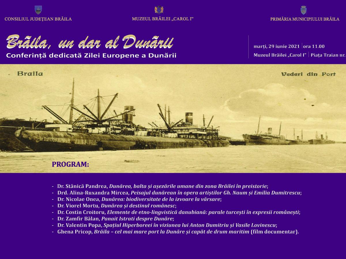 Astfel, în ziua de marți, 29 iunie, de la ora 11.00, Sala "Regele Ferdinand I și Regina Maria" a instituției din Piața Traian nr. 3 a găzduit conferința "Brăila, un dar al Dunării", la care au prezentat comunicări șefi de secție și cercetători de excepție, în frunte cu dr. Costin Croitoru, director interimar. Evenimentul a putut fi urmărit live pe pagina de Facebook a Muzeului Brăilei.