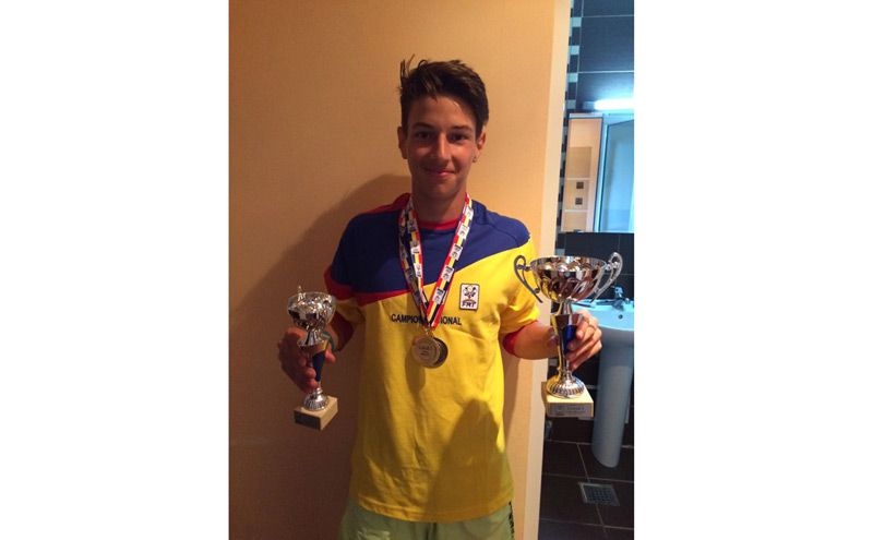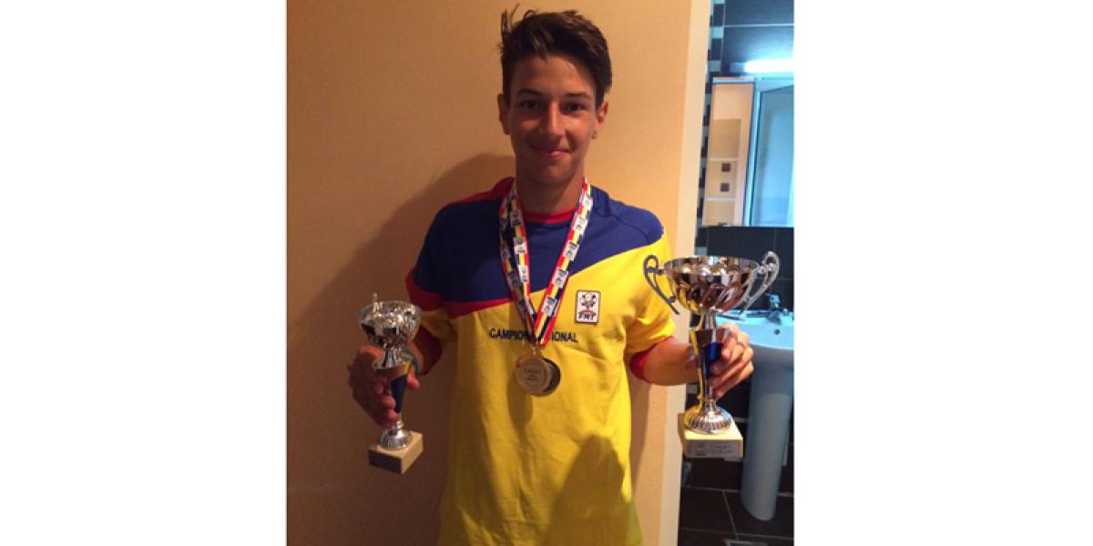 • sportivul de la CSM Brăila a cucerit aurul la dublu, împreună cu ieşeanul Răzvan Aghiom • la simplu, Adrian Gheorghe a cucerit medalia de bronz • ambele medalii au fost obţinute la naţionalele rezervate tenismenilor de 14 ani