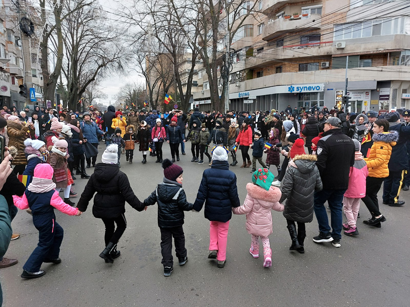• la 164 de ani de la Unirea Principatelor Române, oficialitățile civile și militare, șefii de instituții, precum și reprezentanții societății civile brăilene au depus jerbe de flori la bustul Domnitorului Cuza și i-au omagiat pe făuritorii Micii Uniri • ignorând frigul, brăilenii de toate vârstele s-au prins mai apoi în Hora Unirii, la intersecția Bulevardului Cuza și Calea Călărașilor • micuții de la Palatul Copiilor și artiștii de la „Pandelașul” au făcut un mic spectacol • deși ceva mai scurtă decât în anii trecuți, ceremonia a fost una solemnă: preoții s-au rugat pentru binele brăilenilor, iar Muzica Militară a Garnizoanei Brăila a fost la datorie