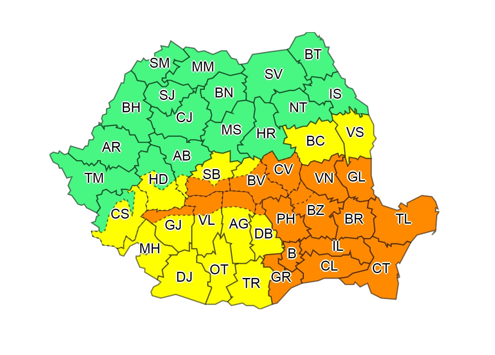 Brăila intră, în acest weekend, sub incidența codului portocaliu de ploi importante cantitativ și vânt puternic, începând cu noaptea de vineri spre sâmbătă, ora 3.00. Codul va fi ridicat duminică, la ora 15.00. Administrația Națională de Meteorologie a emis o avertizare pentru mai multe zone ale țării, după cum urmează: cod portocaliu pentru Muntenia, Dobrogea și sudul Moldovei, unde vor cădea ploi abundente, iar vântul va bate cu intensitate, cod portocaliu pentru Carpații Meridionali și de Curbură, unde vor cădea ninsori consistente, iar pe creste va fi viscol, și cod galben pentru Oltenia, vestul Munteniei, sudul Transilvaniei și centrul Moldovei, unde ar urma să plouă semnificativ, să ningă, iar vântul să sufle cu putere.