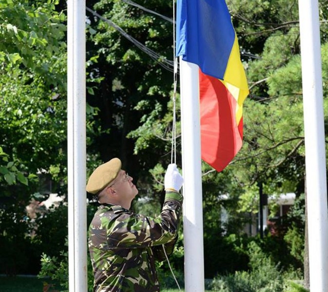După slujbă, drapelul a fost adus în Piaţa Independenţei unde, după un ceremonial militar-religios, a fost înălţat pe catarg.